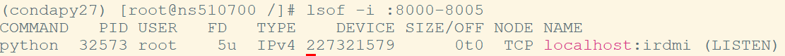 lsof -i :8000-8005